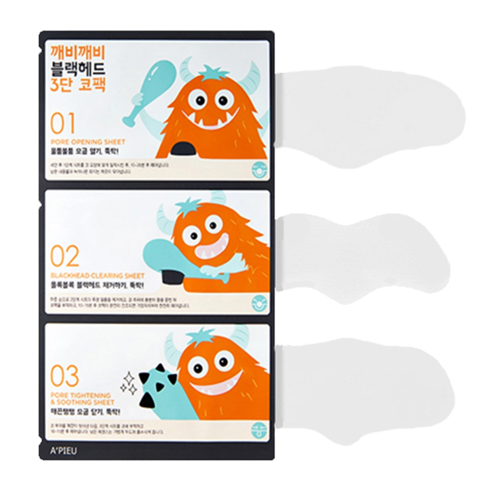 • A'PIEU Goblin Blackhead 3-Step Nose Pack effectively takes care of blackheads in 3 steps.